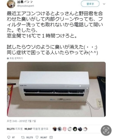 에어컨 내부 청소를 하거나 필터를 교체해도 냄새가 빠지지 않는다면 창문 열고 16도에서 강하게 1시간 사용해보라고 하네요! 냉방 최저로 1시간 돌리고 … 더보기